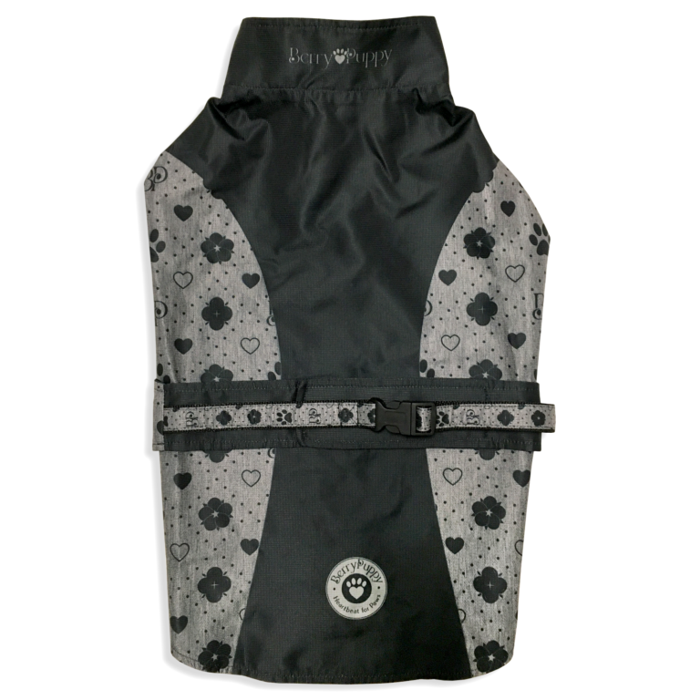 A képeken Berry Fekete mintával készült kutyus esőkabát látható. Esős napokra szükség lehet egy csinos esőkabátra, ami természetesen kívül-belül vízlepergetős anyagból készül. Mintáink közül kiválaszthatod, hogy melyik illik legjobban kedvencedhez.