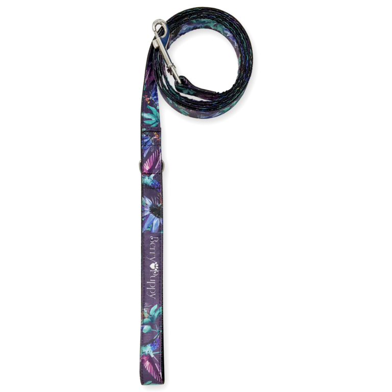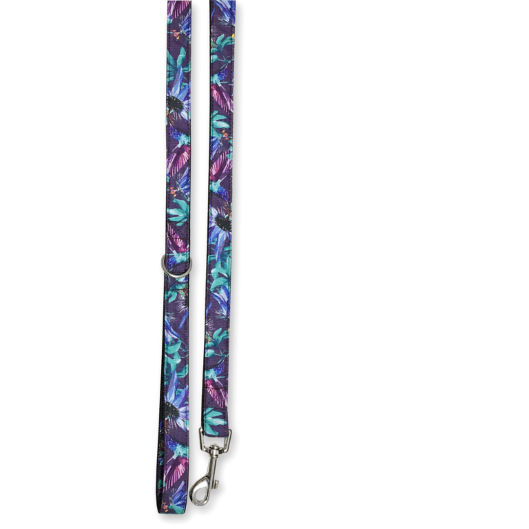 A képeken Lila Kolibri mintával készült 2 cm széles póráz látható. Erős hevederrel van összevarrva mind két oldalán a mintával díszített vízlepergetős anyag, ami végig fut a póráz teljes hosszán.